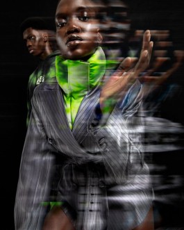 Inspired by ancient societies, togetherness and community, we explore the social philosophy of African Anarchism. Echoing an empowered Pan-African experience, through kindred setups, mirroring effects and natural elements. Aiming to define community in the broader sense, mirrors pose as an extension meant to show multiple societal layers. With a retrospective into the past, Ancestral Anarchy draws on communal values that prevailed across the African continent during pre-colonial times. Centred around principles of sharing, giving and mutual respect, the collection’s guiding concepts find relevance in current times.